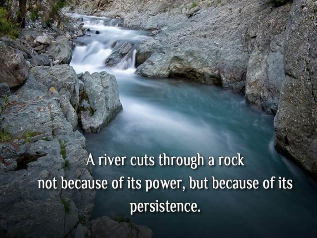 A River Cuts through a rock, not because of its power but because of its persistence.